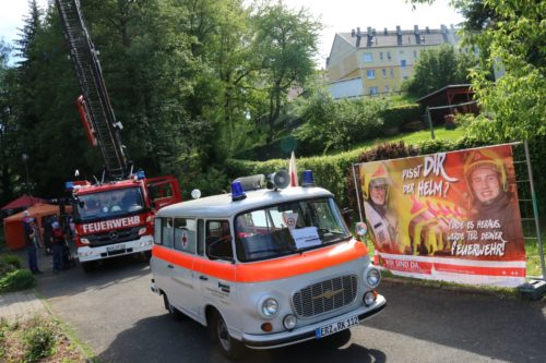 Anlässlich des 150-jährigen Bestehens der Feuerwehr Olbernhau folgten am gestrigen Samstag einige Kameraden der Freiwilligen Feuerwehr Pockau mit zwei Fahrzeugen der Einladung zur großen Technikschau. Hierbei präsentierte die Feuerwehr Pockau zum einen ihr Kombinationslöschfahrzeug DLAK – LF (L20 FA) auf Basis eines Mercedes Benz Atego. Zum anderen konnten Oldtimerfreunde den liebevoll gepflegten Trabant P 60…