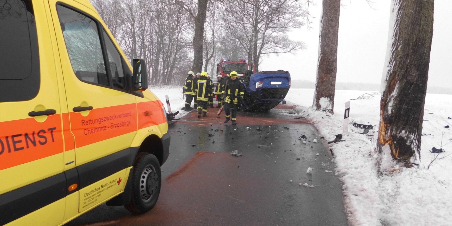 Die Freiwillige Feuerwehr Pockau wurde zusammen mit der Feuerwehr Wernsdorf am ersten Weihnachtsfeiertag mit dem Einsatzstichwort „eingeklemmte Personen, PKW auf Dach“ zu einem Verkehrsunfall auf die Verbindungsstraße zwischen Wernsdorf und Forchheim alarmiert. Kurz nach dem Ortsausgang Wernsdorf in Richtung Forchheim kam ein PKW in einer Linkskurve von der Fahrbahn ab und prallte gegen einen Baum. Dabei überschlug sich das Fahrzeug und blieb auf dem Dach liegen. Am Einsatzort angekommen stellte sich heraus, dass alle Insassen das Fahrzeug glücklicherweise bereits eigenständig verlassen konnten. Die Kameraden aus Wernsdorf übernahmen die Absicherung der Unfallstelle sowie den Brandschutz des verunfallten PKW. Da somit der hydraulische Rettungssatz der Feuerwehr Pockau nicht benötigt wurde, konnten die Pockauer Kameraden die Einsatzstelle nach kurzer Zeit wieder verlassen. Neben Rettungsdienst und Polizei waren 18 Kameraden der Pockauer Wehr vor Ort.