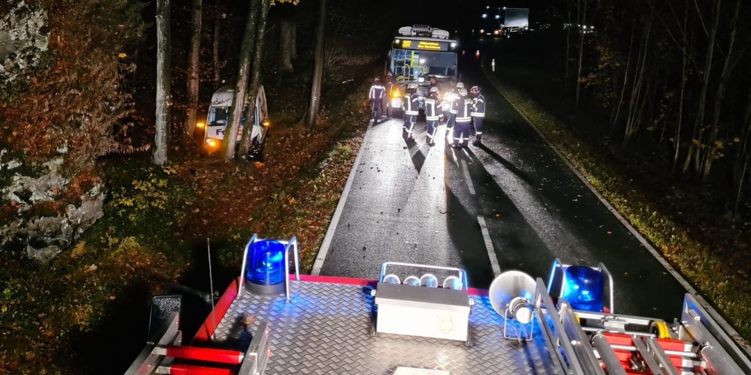 Die Freiwillige Feuerwehr Pockau wurde am Donnerstagabend zu einer Technischen Hilfeleistung mit dem Einsatzstichwort “Unterstützung Rettungsdienst” auf die Marienberger Straße zwischen Pockau und Niederlauterstein alarmiert. Hierbei kam ein Transporter von der Fahrbahn ab, fuhr einen kleinen Hang hinunter und prallte anschließend gegen einen Baum. Nach Absicherung und Ausleuchten der Einsatzstelle, konnte der Fahrer – welcher nicht eingeklemmt war – an den Rettungsdienst übergeben und in ein nahegelegenes Krankenhaus eingeliefert werden. Die Polizei nahm die Ermittlungen zum Unfallhergang auf. Die S224 blieb für kurze Zeit voll gesperrt.