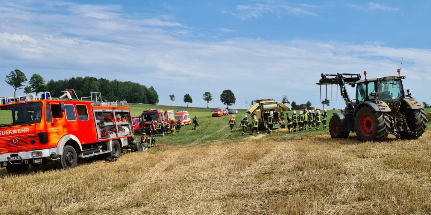 Die Freiwillige Feuerwehr Pockau wurde am Freitagnachmittag zusammen mit den Stadtteilwehren Lengefeld, Lippersdorf, Reifland, Wernsdorf und Wünschendorf sowie der Feuerwehr Eppendorf und dem diensthabenden Kreisbrandmeister mit dem Einsatzstichwort “Brand 4″ zu einem Feld nahe Reifland alarmiert. Laut Einsatzmeldung brannte hierbei eine sich auf dem Feld befindliche Strohpresse, wobei das abgeerntete Feld selbst Feuer zu fangen drohte. Nach Ankunft am Einsatzort positionierte sich die FF Pockau mit ihren Löschwasservorräten, nach Absprache mit dem verantwortlichen Einsatzleiter, vorerst im Bereitstellungsraum. Der Brand konnte durch das schnelle Handeln der Erntearbeiter sowie die erst eintreffenden Einsatzkräfte zügig unter Kontrolle gebracht und abgelöscht werden.
