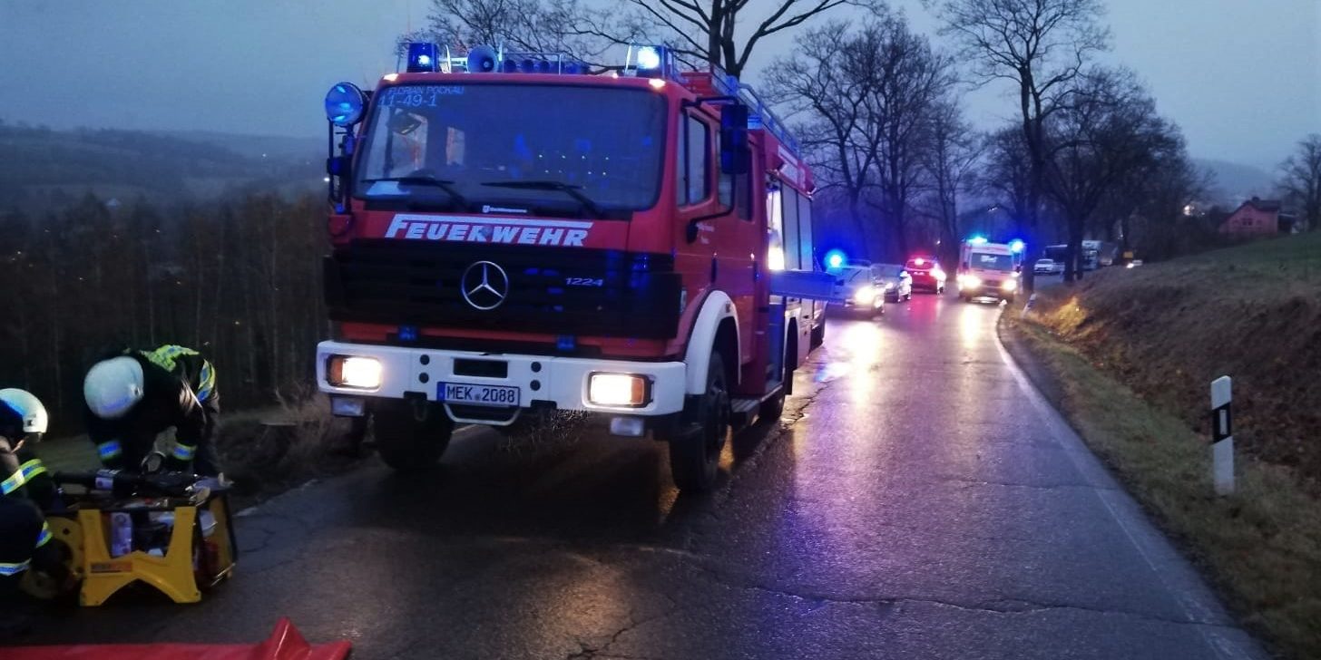 Die Freiwillige Feuerwehr Pockau wurde heute Morgen zu einer Technischen Hilfeleistung mit dem Einsatzstichwort “Eingeklemmte Person” auf die Lengefelder Straße zwischen Pockau und Lengefeld alarmiert. Ein aus Richtung Lengefeld kommender PKW kam hierbei von der Fahrbahn ab und prallte gegen einen Baum. Infolge dessen rollte der PKW einen Abhang hinunter, überschlug sich und kam anschließend auf einer Wiese zum stehen. Zwei von den insgesamt drei Insassen konnten das verunfallte Fahrzeug eigenständig verlassen. Der Fahrer, welcher eingeklemmt war, wurde umgehend mit hydraulischem Rettungsgerät (Schere und Spreizer) patientenschonend befreit. Dies passierte in Zusammenarbeit und unter ständiger Absprache mit dem Rettungsdienst. Parallel dazu wurde die Einsatzstelle ausgeleuchtet und eine sogenannte Geräteablage eingerichtet. Neben den Einsatzkräften von Feuerwehr waren der diensthabende Kreisbrandmeister, ein Notarzt sowie drei Rettungswagen vor Ort. Die Polizei nahm die Ermittlungen zum Unfallhergang auf. Die Staatsstraße 223 blieb für ca. eine Stunde voll gesperrt.