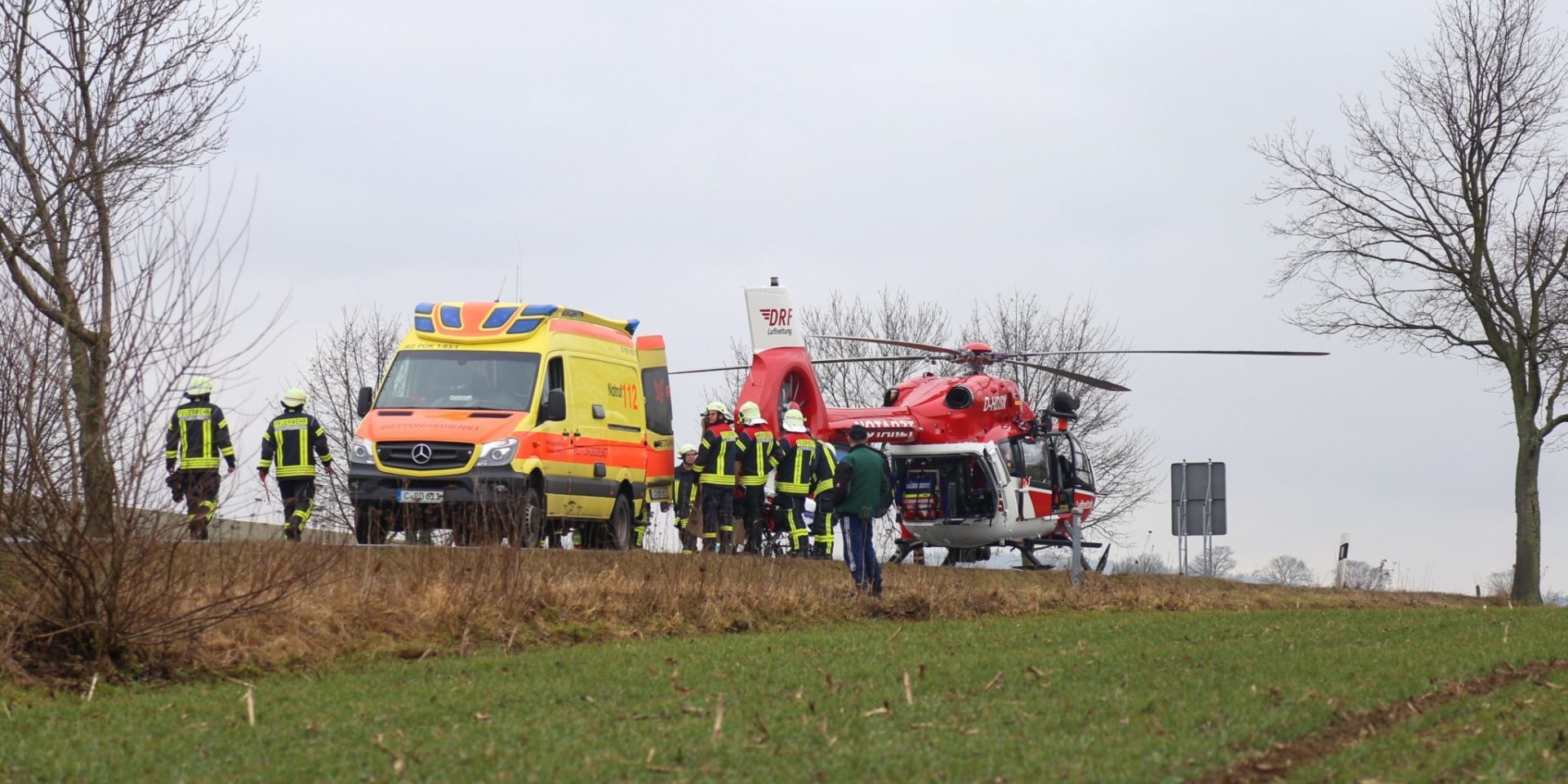 Ein Rettungshubschrauber wurde angefordert um die schwer verletzte Fahrerin in ein Krankenhaus zu fliegen. Der LKW Fahrer wurde leicht Verletzt. Ebenso waren zwei Rettungswagen, ein Notarzt, Polizei sowie die Straßenmeisterei vor Ort.