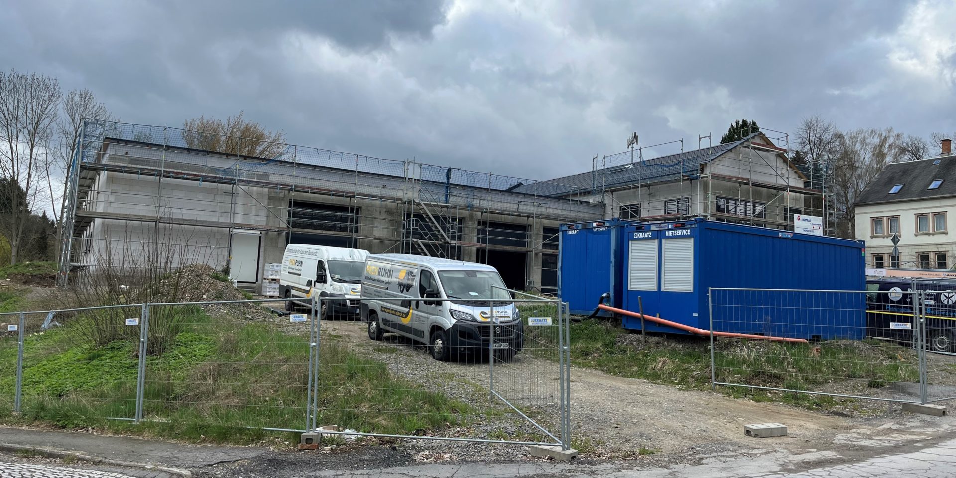 Im März und April konnten unter anderem die Putzarbeiten durch die Firma ‚Maler UNITAS GmbH‘ aus Zschopau im gesamten Objekt fertiggestellt sowie der Innenausbau durch die Firma ‚SF-Ausbau GmbH‘ aus Freiberg begonnen und zügig vorangetrieben werden. Ebenso wurde auf dem Dach des Sozialgebäudes eine Photovoltaikanlage installiert.
