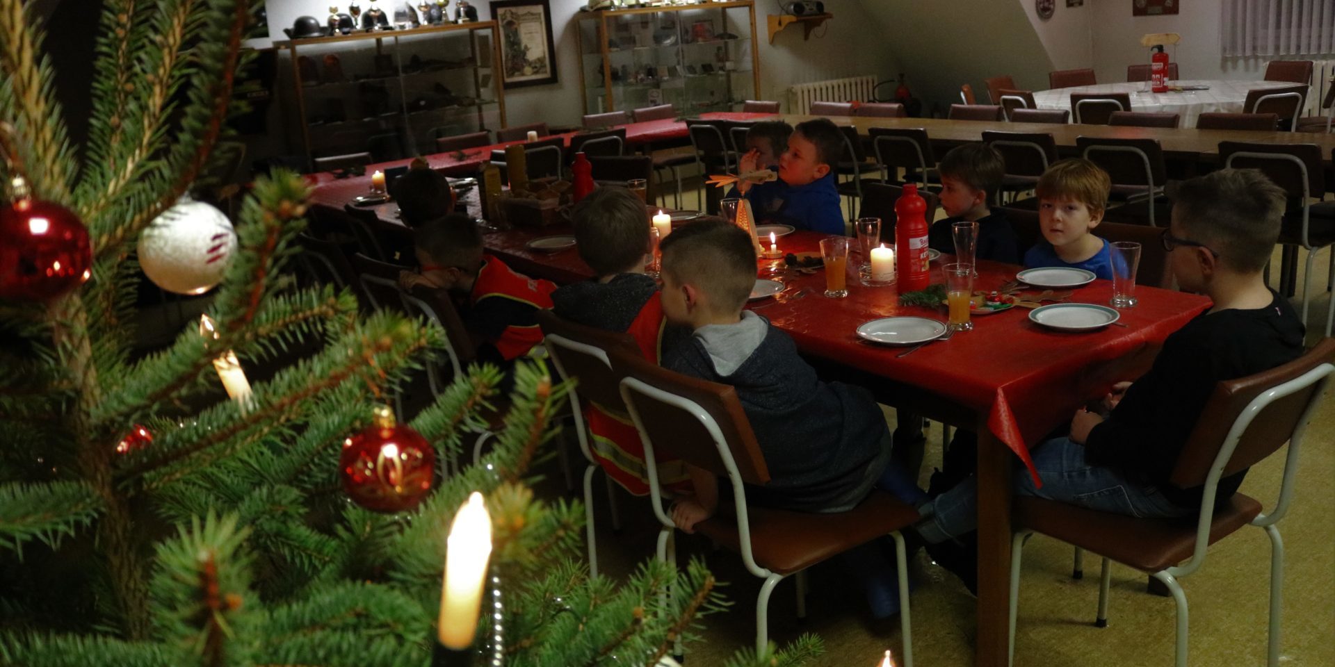 Am Montag, dem 12. Dezember war es nun soweit. Ein Jahr voller Spiel, Spaß und vielen tollen Diensten ging zu Ende. Aber… Etwas durfte natürlich nicht fehlen! Genau! Die Weihnachtsfeier der Löschzwerge im Gerätehaus der Feuerwehr. Neben weihnachtlicher Musik gab es auch hier viel zu erzählen, zu lachen und man erinnerte sich an die zurückliegenden Dienste, die die Löschzwerge absolvierten. Natürlich kamen auch Naschmäuse auf ihre Kosten. Auf einmal aber hörte man laute Schritte im Treppenhaus. Sie kamen immer näher und näher, bis man eine große rote Gestalt an der Tür zum Schulungsraum sah. Es klopfte. Ein, zwei, drei mal. Der Verdacht bestätigte sich! Es war tatsächlich der Weihnachtsmann. Nachdem dieser von den Kindern mit Respekt begrüßt wurde, konnten ihm alle ein Gedicht oder ein Lied vortragen. Neben einem kleinen Geschenk gab es auch einen eigenen Diensthelm für jeden Löschzwerg. Dieser soll, so der Weihnachtsmann, bei den nächsten Diensten zur Sicherheit getragen und bei Wechsel in die Jugendfeuerwehr gleich mit übernommen werden. Auch für die Betreuer brachte der alte Knecht natürlich etwas mit. Nachdem der Weihnachtsmann allen ein schönes Weihnachtsfest wünschte, machte er sich wieder auf den Weg, um seine großen Körbe wieder mit neuen Geschenken für viele andere Kinder zu füllen. Im Anschluss gab es noch ein Abendessen, wobei auch dieser aufregende Tag der kleinen Helden zu Ende ging.